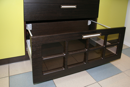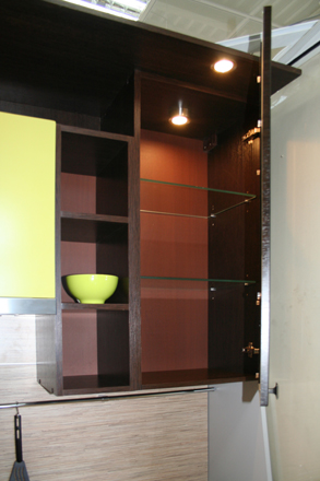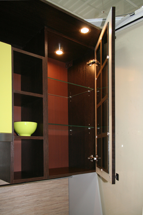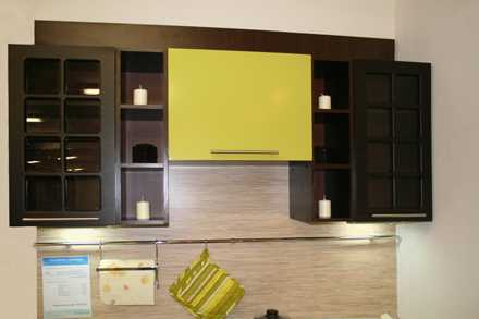 Восточная кухня. Завораживающая философия Востока, чайные традиции... Ваше путешествие на Восток начнётся с Вашей кухни. Фасады МДФ-ПВХ «Венге» и «Лён светлый» стильные ручки, столешница из тёмного искусственного камня с глянцевой поверхностью и декорированная стеновая панель «Записки» Средняя стоимость 45000 руб. за м.п.