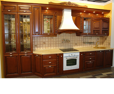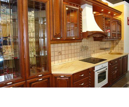 При покупке кухонного гарнитура от 200000 руб. столешница из камня Montelli в подарок! (подробности акции уточняйте в салоне) Другие акции компании смотрите здесь — Кухонный гарнитур «Галатея» Общая стоимость со столешницей — 351 300 руб. (старая цена). Со скидкой 40 % на выставочный образец — 210780 руб. (новая цена). Мойка Plados 10 280 руб. Смеситель 5940 руб. Вытяжка VICTORIA — 42 850руб. Кухня «Галатея» Настоящий шедевр итальянского дизайна, кухня, которой присущ традиционный стиль и элегантность. Оригинальное изящное сочетание филенчатой поверхности и фигурных элементов на рамке фасадов, в виде «косички» по периметру и «трилистника» в углах фасада, с характерной тональностью черешни, лаконичные витражи из дымчатого стекла с бронзовыми раскладками, обработанные по технологии «фацет», декоративные витые колонки, неповтаримая трехарочная конструкция придают кухне особый шарм, оттенок таинственности и загадочности. Очарование благородной черешни и разнообразие декоративных элементов, позволяет Вам создать нечто совершенно эксклюзивное — свою Галатею!