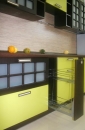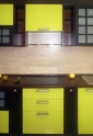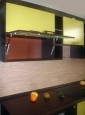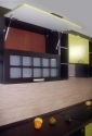 Восточная кухня. Завораживающая философия Востока, чайные традиции... Ваше путешествие на Восток начнётся с Вашей кухни. Фасады МДФ-ПВХ «Венге» и «Лён светлый» стильные ручки, столешница из тёмного искусственного камня с глянцевой поверхностью и декорированная стеновая панель «Записки» Средняя стоимость 45000 руб. за м.п.