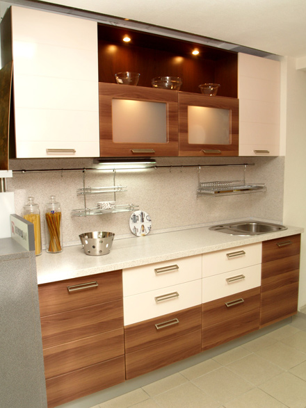 Линейная кухня, состоящая из секций с подъмными фасадами, большой открытой секции, большим количеством выкатных ящиков, просторной рабочей поверности. Максимум функциональности при минимальных размерах гарнитура.